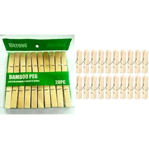 Xintong - ملاقط ملابس خشب 20 قطعة من زينتونج + مجموعة مشابك غسيل خشب، 20 قطعة - لون بيج