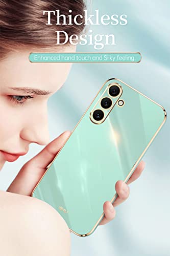 XINYEXIN - جراب موبايل من السيليكون لموبايل سامسونج جالاكسي A24 - A24 بحواف ذهبية تصميم رفيع جدًا وناعم البولي يوريثين المقاوم للحرارة المضاد للصدمات شن يي - وردي مصد