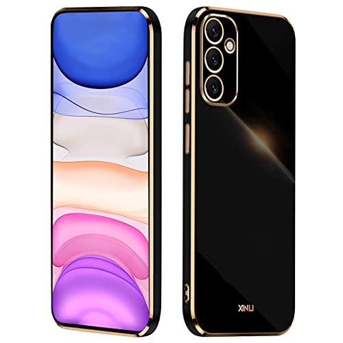 XINYEXIN - جراب من البولي يوريثين الحراري المرن بتصميم حواف ذهبية سيليكون رفيع جدًا ومضاد للصدمات لموبايل سامسونج جالاكسي A34 5G شين يه - لون أسود