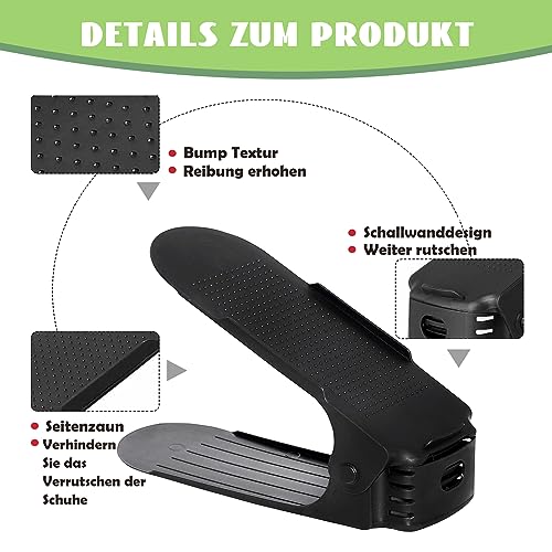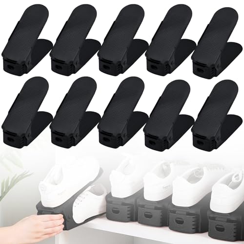XINZI - زينزي رفوف احذية قابلة للتعديل عبوة من 30 قطعة مصنوعة مادة البولي بروبيلين منظم مجموعة فتحات غير للانزلاق حامل مزدوج الطبقات رف موفر للمساحة اسود اكسينزي بلاستيك .