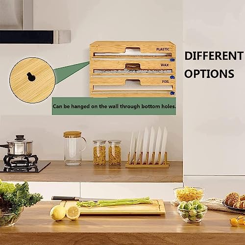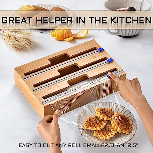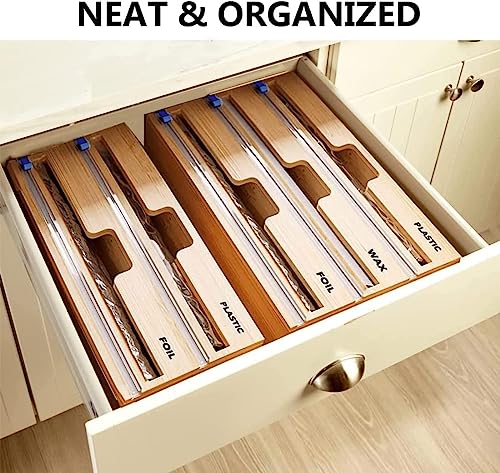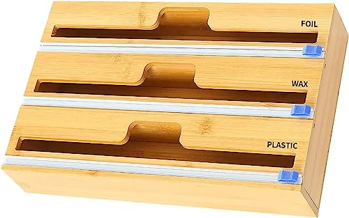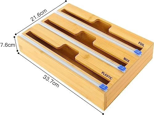 XIRZHIYO - موزع لفات تغليف بلاستيك 3 في 1 مع قطاعة بطول 30.5 سم للفات التغليف المصنوعة من القصدير والبلاستيك ومنظم لفات للأدراج من زدجيو (3 فتحات)