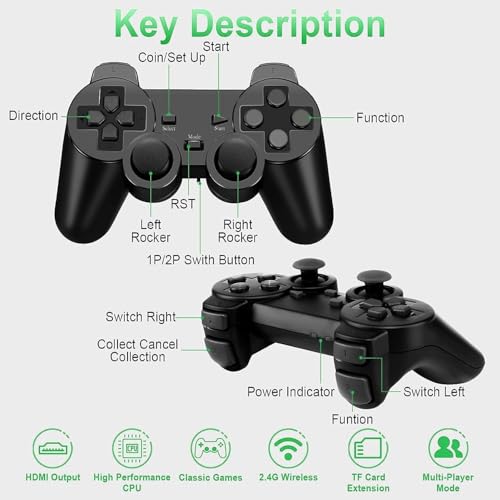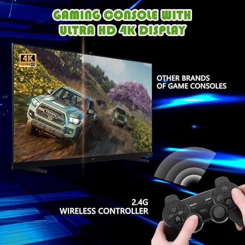 Gene Pro General - جهاز تشغيل ألعاب الفيديو الرقمية ريترو لاسلكي من زيوجون عصا فيديو بخاصية التوصيل والتشغيل مدمجة أكثر 10000 لعبة مخرج HDMI 4K 9 محاكيات كلاسيكية مع 2 وحدة تحكم لاسلكية 2.4G 64G أسود