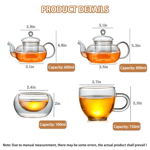 xixi-home - طقم شاي زجاجي مع مصفاة زجاجية للنساء، طقم إبريق شاي شفاف، طقم شاي أنيق، للوالدين والأصدقاء والعشاق، قاعدة على شكل قلب وأكواب مزدوجة الطبقات، من اكس اي اكس اي هوم
