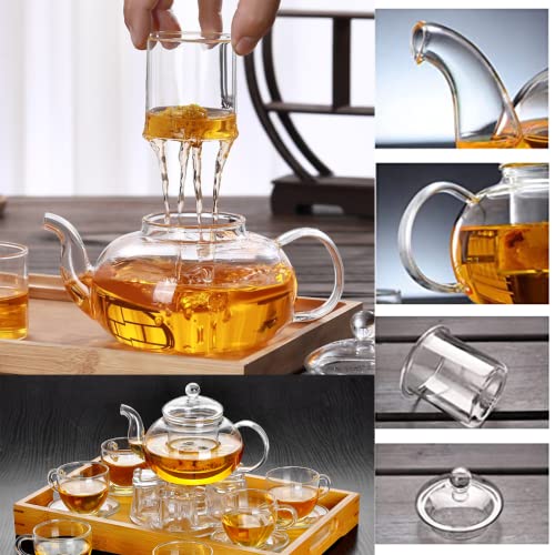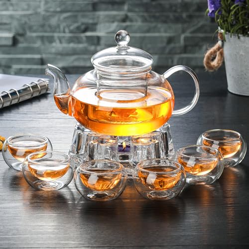 - 【المواصفات】السعة: إبريق شاي (مع مصفاة شاي)/600 مل، كوب/100 مل، المحتويات: إبريق شاي × 1 + كوب × 6 + سخان دائري × 1. المادة: زجاج البوروسيليكات يمكن تسخينه أيضًا باللهب المباشر/الميكروويف.
