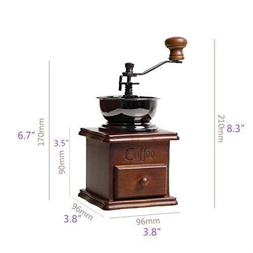 XIYUAN - مطحنة قهوة يدوية خشبية عتيقة من السيراميك من شييوان، مطحنة قهوة ريترو ستايل أثرية بتصميم قابل للدوران