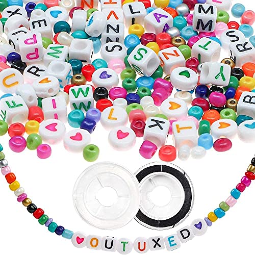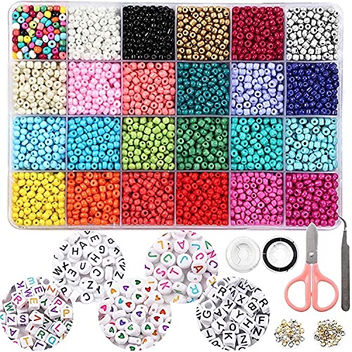Xizheng - عدد 7200 قطعة خرز زجاجية بحجم 4 ملليمتر و300 من الحروف الابجدية لصنع المجوهرات والحرف اليدوية مع اسلاك خيط استك وملاقط واكسسوارات مادة مصنوعة يدويا