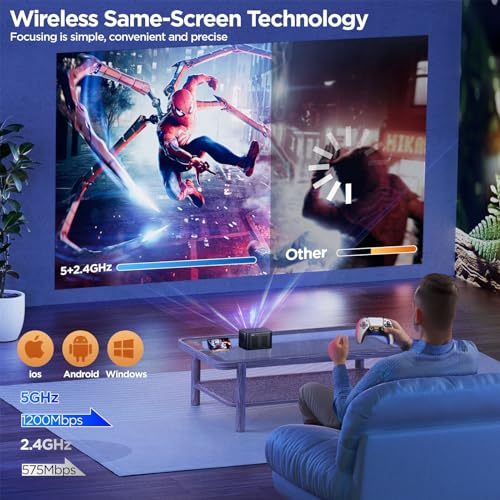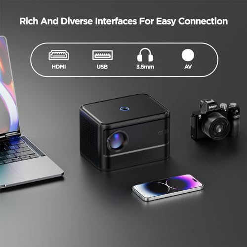 XJ-HOME - جهاز عرض صغير محمول【تركيز كهربائي】 18000 لومن، شبكة الجيل الخامس 5G واي فاي بلوتوث 5.2، يدعم FHD 1080 بكسل، جهاز عرض منزلي LED 230 بوصة لنظام iOS/أندرويد/تي في ستيك/PS5/HDMI/USB من اكس جيه هوم