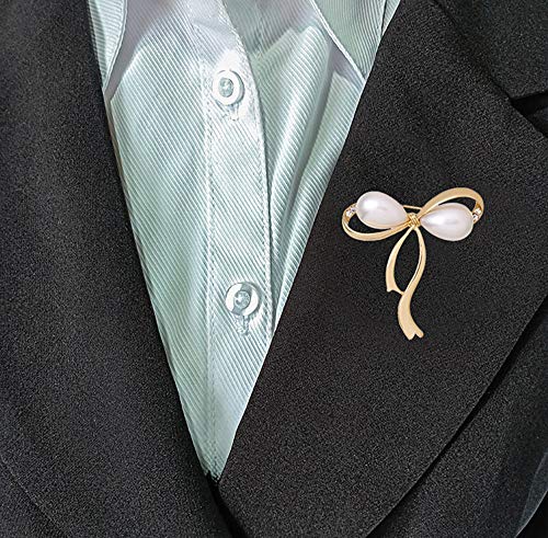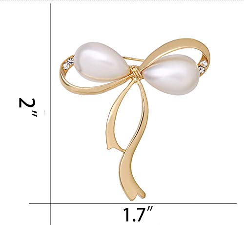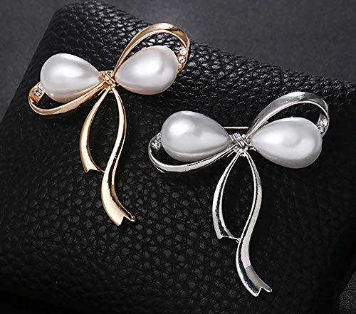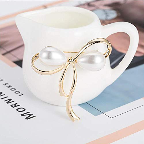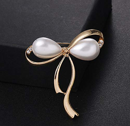 Xjoyous - دبوس بروش على شكل فيونكة من اللؤلؤ الصناعي بتصميم بسيط بمشبك على شكل فيونكة للنساء والفساتين والشال، كريستال، غير معروف،