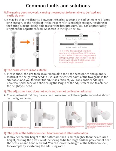 - 🔧【تثبيت سهل وسريع】يمكن تركيبه بدون ثقب في غضون دقائق بدون الحاجة إلى أي أدوات. كما يأتي مع قواعد بأغطية مطاطية لتثبيته بإحكام. ما يضمن عدم تلف الأرضية أو السقف. مع منظم رفوف الدش، لديك دائمًا جميع إكسسوارات الحمام الخاصة بك في متناول اليد بسهولة عند استحمامك في أي حمام. يوجد دليل تركيب مفصل في العبوة (توافر اللغة العرية غير مؤكد).