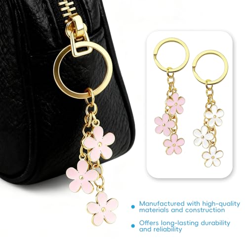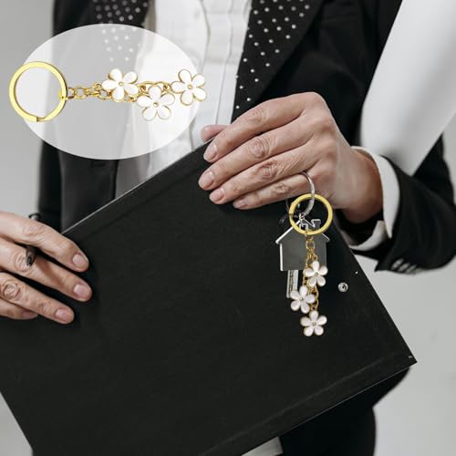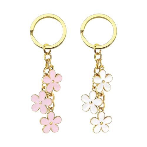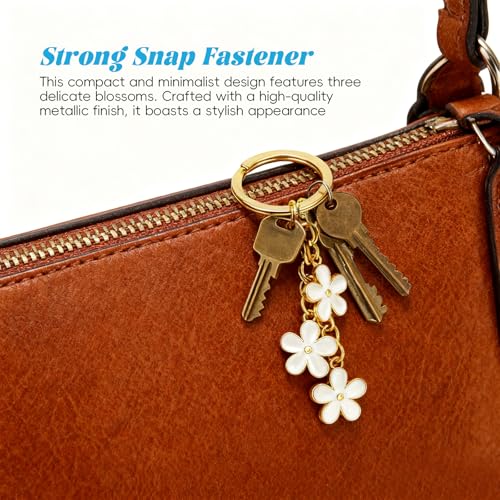 Xlihdzum - سلسلة مفاتيح بتصميم زهرة الاقحوان مطلية بالمينا من اكسليهدزوم، سلسلة مفاتيح بشراشيب للنساء - سلسلة مفاتيح بتصميم زهرة الاقحوان، سلسلة مفاتيح بشراشيب مطلية بالمينا للنساء، اكسسوارات السيارة