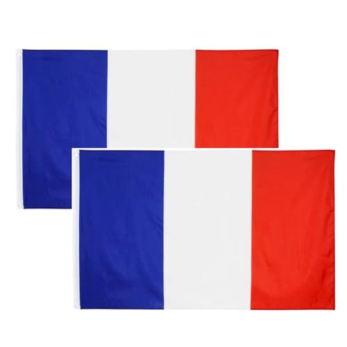 XMASIR - 2 × علم فرنسي 90 × 150 سم مع ثقوب من البوليستر والنحاس من اكسماسير بالوان زاهية للاستخدام الخارجي والداخلي