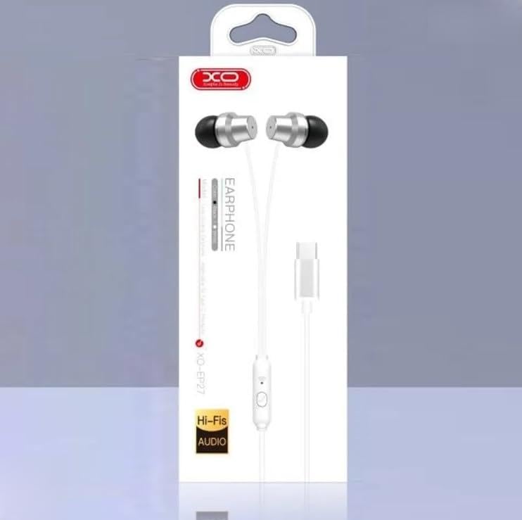 Generic - سماعات اذن سلكية هاي فاي من اكس او، لون ابيض، سماعات داخل الاذن مع عناصر تحكم مدمجة، USB نوع C، مشغل ديناميكي، عزل الضوضاء السلبية، تصميم مريح للموسيقى، مشغل 10 ملم