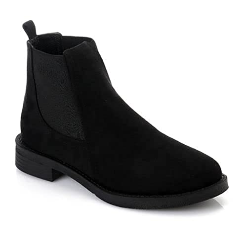Xo Style - بوت جلد شمواه قصير بطول الكاحل من اكس او ستايل, أسود, 40، للنساء