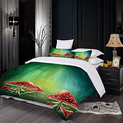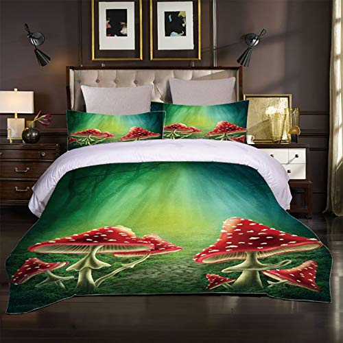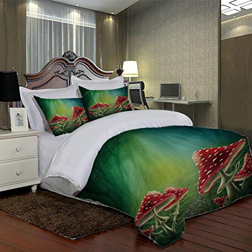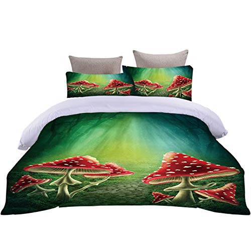 XOYKX - طقم ملاية سرير مقاس مزدوج من 3 قطع، غطاء لحاف بتصميم ثلاثي الأبعاد 3D لفطر، 2.6 × 2.4 متر، طقم سرير من 3 قطع (1 غطاء لحاف + 2 كيس مخدة)، مايكروفايبر 100% من اكس او واي كيه اكس، أحمر، من XOYKX