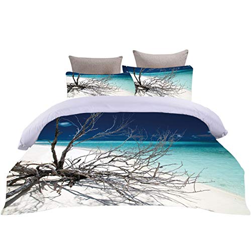 XOYKX - طقم غطاء لحاف للبالغين من اكس او واي كيه اكس مع 2 كيس وسادة مقاس 260 × 240 سم بتصميم شجرة الكرمة البحرية مع سحاب اغلاق بتصميم عصري من 3 قطع من المايكروفايبر الناعم لا يسبب الحساسية، الألياف الدقيقة