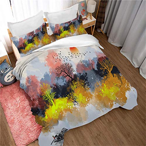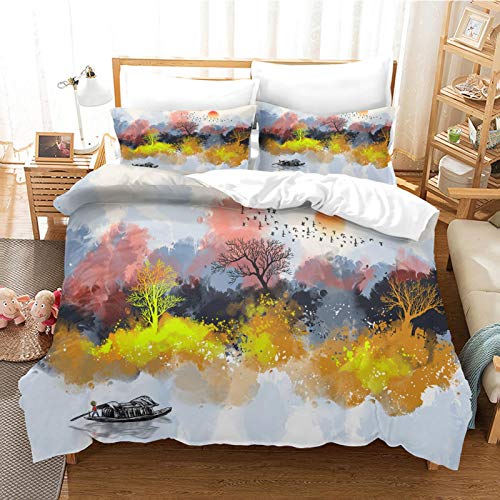 XOYKX - طقم غطاء لحاف مطبوع - مقاس مزدوج 200 × 200 سم + 2 كيس وسادة بتصميم فن جرافيتي تجريدي بنمط غابة سهل العناية وغطاء لحاف من المايكروفايبر الناعم مع سحاب إغلاق مكون من 3 قطع من اكسيواكس، الألياف الدقيقة