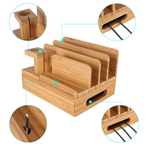 - 【منظم متعدد الأجهزة】: يمكن لحامل قاعدة الشحن المصنوع من الخيزران الطبيعي الصديق للبيئة استيعاب ما يصل إلى ستة أجهزة (مثل ايفون والهاتف الذكي وسامسونج جالكسي ونيكسس وابل ووتش وما إلى ذلك) في نفس الوقت للحفاظ على أجهزتك بالترتيب ويساعد على تنظيف شحن جهاز التكديس.