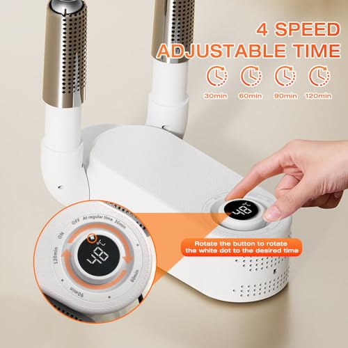 - توقيت ذكي: يحتوي مجفف الأحذية على 4 سرعات توقيت، مقبض دوار، سهل الاستخدام، يمكن ضبطه بحرية لمدة 30/60/90/120 دقيقة، إيقاف تلقائي في نهاية العمل، ولا داعي للقلق بشأن استهلاك الطاقة الزائد، سخان أحذية يمكنك الحصول على مجفف أحذية كهربائي مريح في الوقت المحدد، يجف بكفاءة أكبر