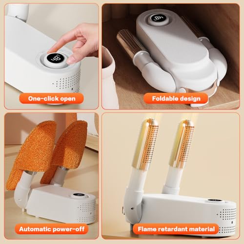 - متعدد الاستخدامات: مجفف الأحذية القابل للطي هذا مناسب لجميع أنواع الأحذية والأحذية الطويلة والقفازات والجوارب والقبعات وقفازات الملاكمة وأحذية الثلج والأحذية الرياضية والأحذية المسطحة وأحذية الأطفال وما إلى ذلك. فقط قم بتوصيله وضبط الوقت وانتظر حتى يجف الحذاء