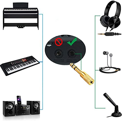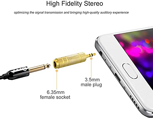 - 【جودة عالية】مقبس نحاسي صلب مقاس 3.5 ملم إلى أنثى 6.35 ملم بالمقارنة مع هذه المقابس البلاستيك ذات الطلاء المعدني، فإنها تتمتع بعمر خدمة أطول. موصلات مطلية بالذهب عيار 24 قيراط مقاومة للتآكل وتضمن الحد الأدنى من فقدان الإشارة.