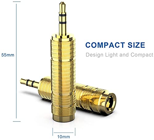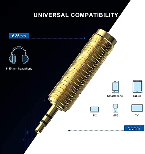 XPSH - محول جاك مقاس 3.5 ملم إلى 6.35 ملم ذكر 3.5 ملم إلى 6.5 ملم أنثى محول صوت ستيريو AUX مع وصلات مطلية بالذهب لسماعات الرأس ومكبرات الصوت والجيتار والبيانو من اكس بي اس اتش