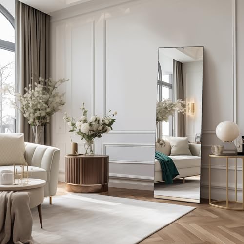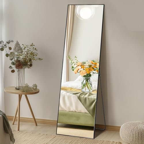 Generic - مراية فريدة كاملة الطول مع إطار معدني من الألومنيوم، مراية قائمة أو معلقة، مراية حائط كبيرة HD مع خطافات مثالية [غرف النوم] [غرف الملابس] بإطار معدني أسود - 160 ساعة - 45 واط) من اكس بي واي-8