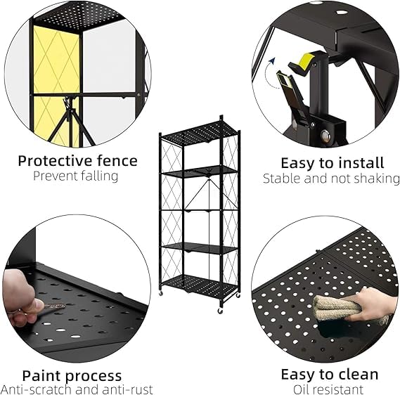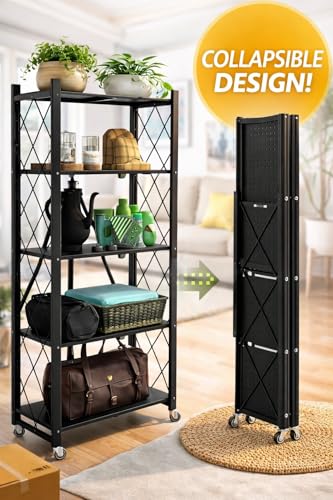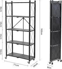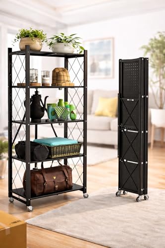 Generic - أرفف تنظيم وتخزين قابلة للتحرك، حامل رفوف قائم بذاته قابل للطي للجراج، دولاب مخبوزات بالمطبخ لحمل أطباق الخبز، رف منظم قابل للتعديل بعجلات متينة من XPY-D67 (لون أسود، مقاس كبير، عبوة من 5 قطع)