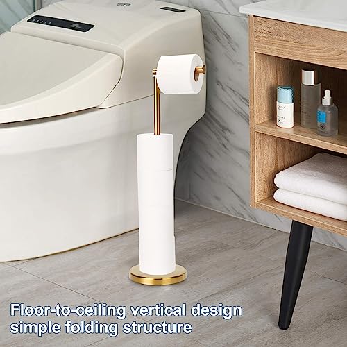 XQZMD - حامل ورق تواليت قائم، من الفولاذ المقاوم للصدأ مع قاعدة شديدة التحمل لتخزين ورق التواليت، ذهبي من اكس كيو زد ام دي
