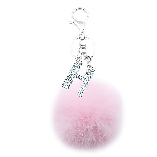 Xsclpomddy - سلسلة مفاتيح فضية بتصميم حروف ابجدية من اكس اس سي ال بومدي مصنوعة من فرو صناعي وكرات بوم بوم وحجر الراين الكريستالي للنساء والفتيات