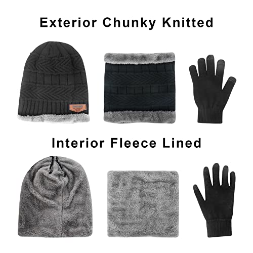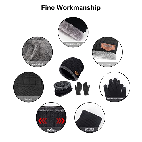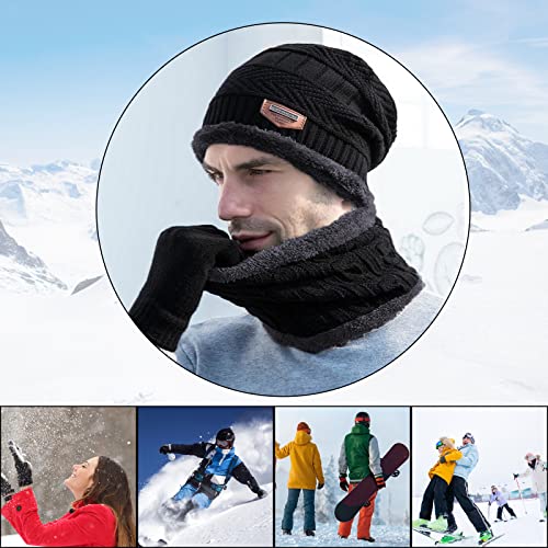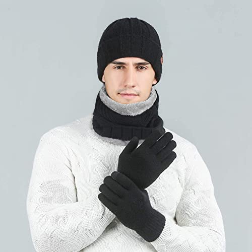 XTDMJ - طقم شتوي من اكس تي دي ام جيه للجنسين، مصنوع من الأكريليك، باللون الأسود، مقاس موحد، بتصميم يومي، يتضمن قبعة ووشاح وقفازات
