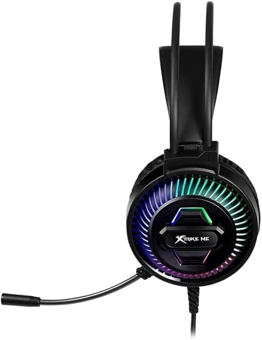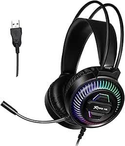 Generic - سماعة رأس للألعاب بالفضاء اللوني ار جي بي - USB، نظام صوت محيطي ستيريو، إضاءة الفضاء اللوني ار جي بي - مشغلات 50 ملم - أغطية أذن جلد موديل GH510 من اكسترايك مي