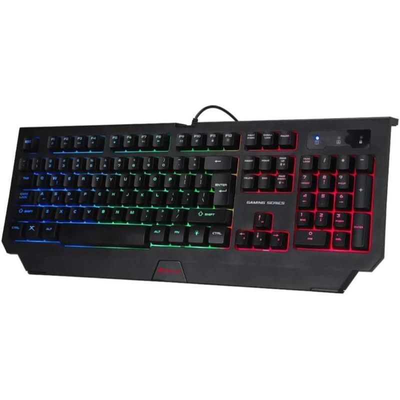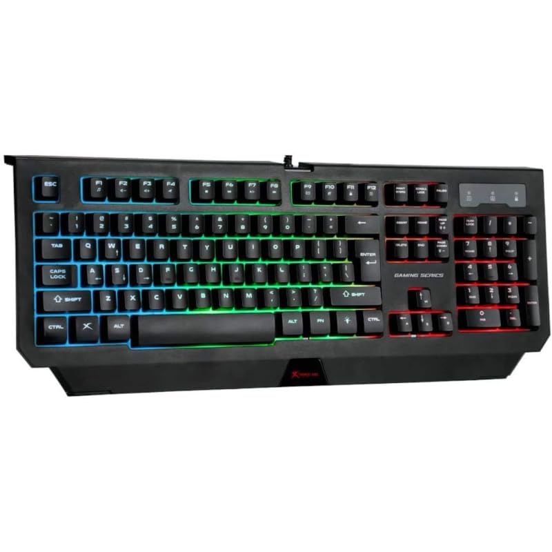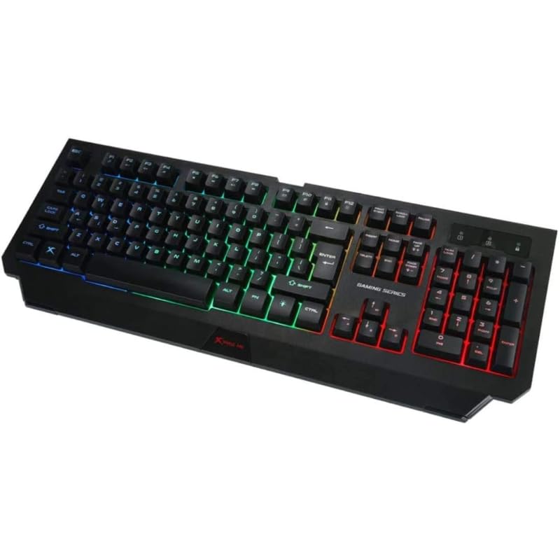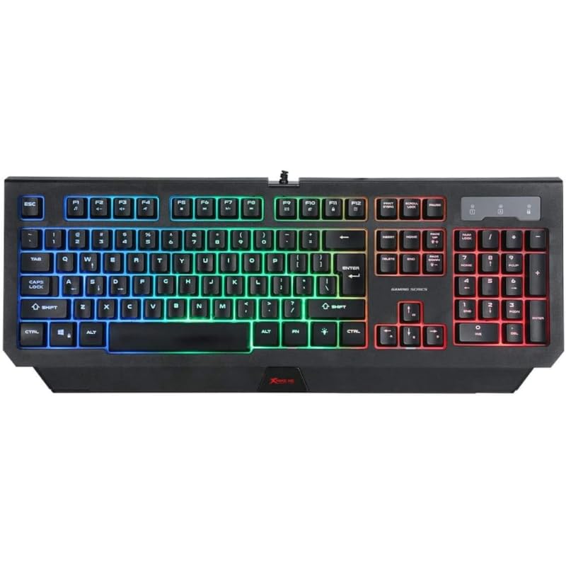 Xtrike Me - كيبورد ألعاب KB-507 بغشاء مع مفاتيح وسائط متعددة وإضاءة خلفية بألوان قوس قزح من اكسترايك مي، لون أسود