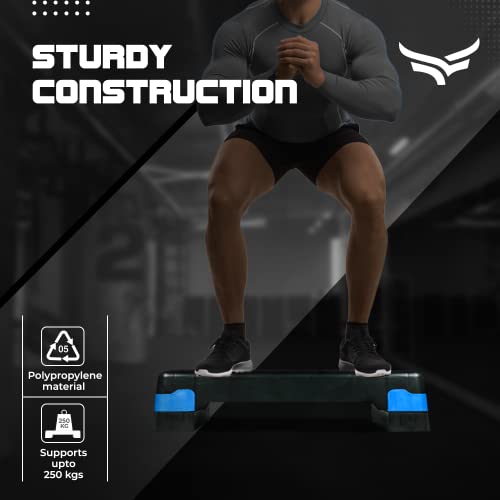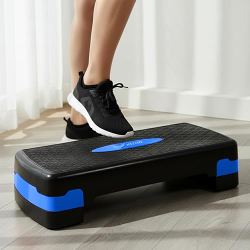 XTRIM - جهاز ستيبر ايروبيك لتمارين الكارديو مع تعديلين للارتفاع 10 و15 سم، 4 وسادات مطاطية مضادة للانزلاق على الساقين، منصة مقاومة للانزلاق (يدعم وزن 250 كجم، 68 سم)