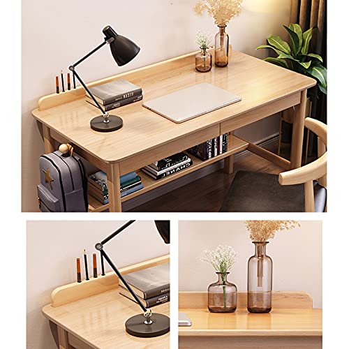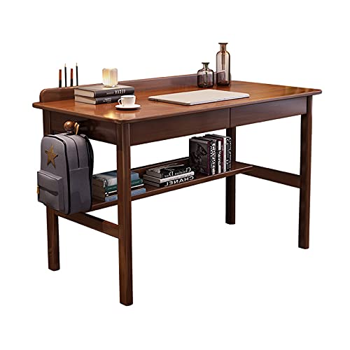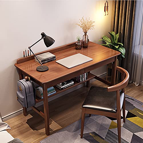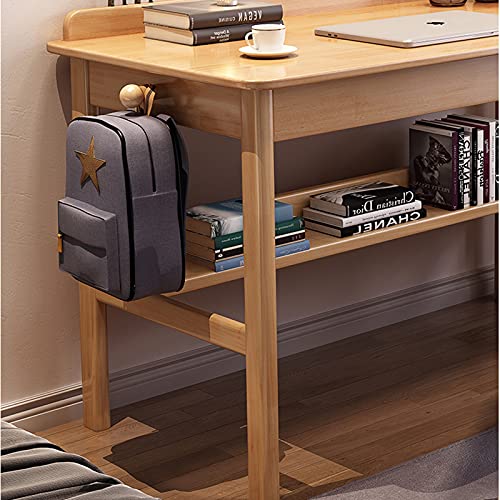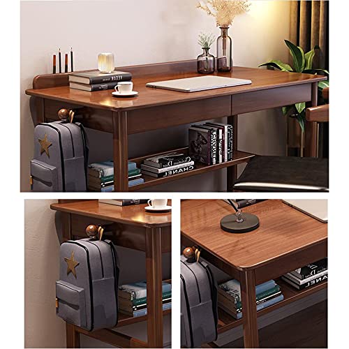 Xu Yuan Jia-Shop - مكتب للكمبيوتر من شو يوان جيا-شوب، مكتب منزلي من الخشب المطاطي، طاولة دراسة بسيطة وأنيقة، طاولة عمل متعددة الوظائف مع أدراج ورفوف تخزين، طاولة عمل وخطافات جانبية، طاولة كتابة