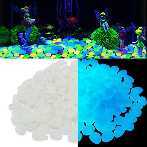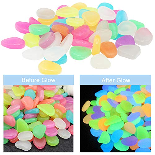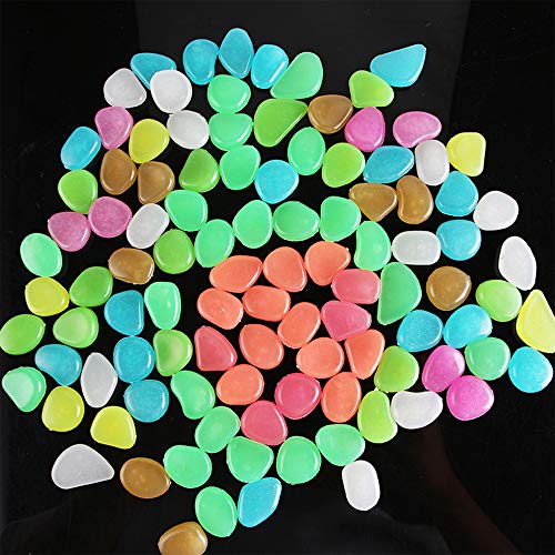 XUBX - احجار سكافي ملونة مضيئة 100 قطعة، احجار تضيء في الظلام لتزيين ممرات الحديقة، حوض السمك، زينة المنتزة، احجار راتنج للزينة من اكس يو بي اكس