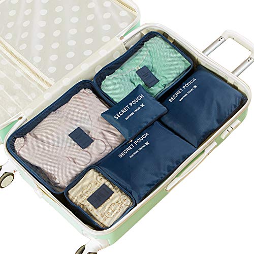 Xufloren - منظم لشنطة السفر من القماش لتخزين الملابس زفلورين مجموعة منظمات قماشية مقاومة للماء ملائمة للسفر 6 قطع قماش اوكسفورد + شبكة- متعدد الألوان