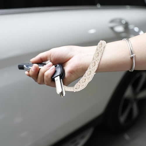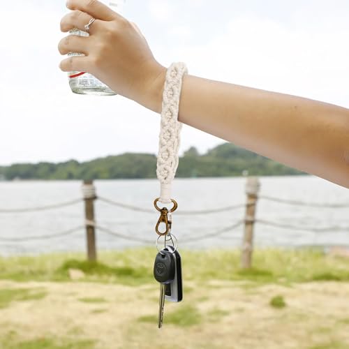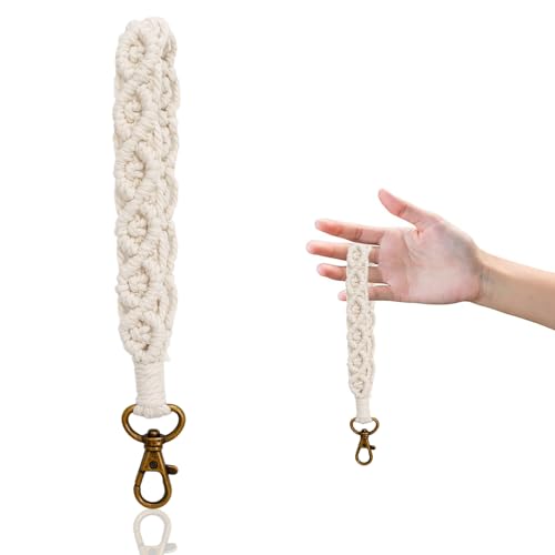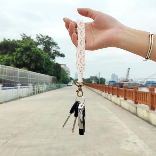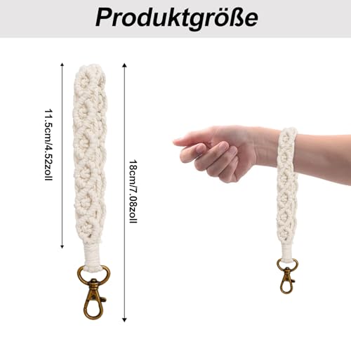 Xuigort - 1 × حلقة مفاتيح مكرمية حبل 18 سم قطني بوهو قصيرة سوار مضفر للنساء قلادة بشراشيب السيارة هدايا لوصيفات العروس أبيض