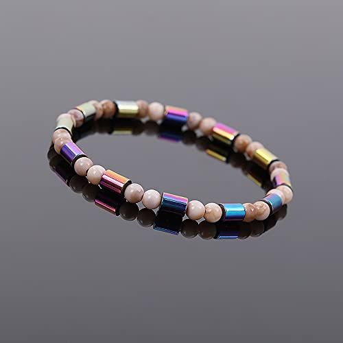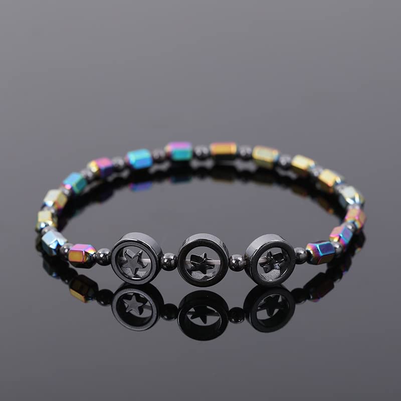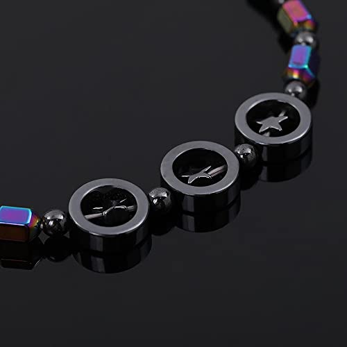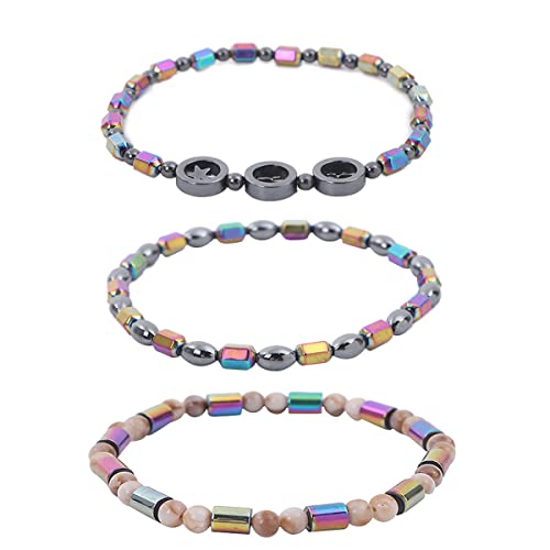 XUN Zhe - طقم خلخال علاج الهيماتيت مكون من 3 قطع، مطرز من حجر المغناطيس المرن للطاقة الملونة، مطاطي ومجوف بشكل هندسي، مناسب للجنسين, الهيماتايت