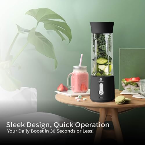 XVersion - خلاط شخصي محمول لاسلكي مع حزام حمل عالي السرعة و6 شفرات وخفاقة وعصارة للمكتب وصالة الالعاب الرياضية والاماكن الخارجية من اكس فيرجن، سعة 500 ملليلتر