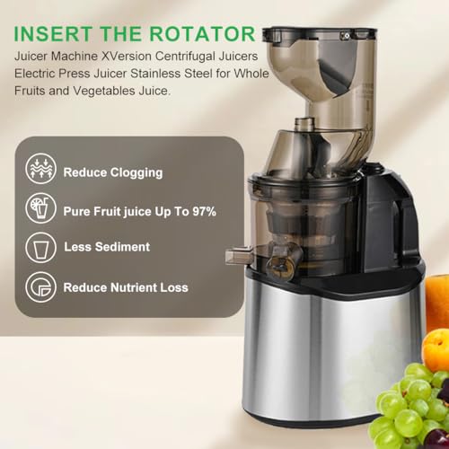 XVersion - ماكينة تحضير عصير البرتقال من اكس فيرجن، عصارة بطيئة من الفولاذ المقاوم للصدأ للفواكه الكاملة والخضروات والعصير والسموذي مع فلتر، 2 كوب وفرشاة للمنزل والمكتب والمقهى (فضي)