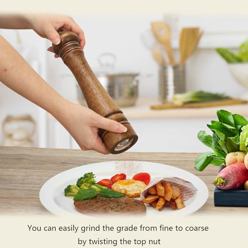 Xvnoesza - مطحنة فلفل وملح يدوية قابلة لإعادة الملء مصنوعة من خشب البلوط لطحن التوابل الخشنة بالمطبخ من Xvnoesza، قطعة واحدة