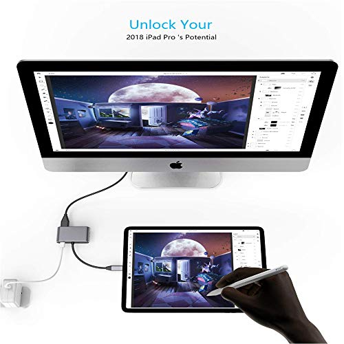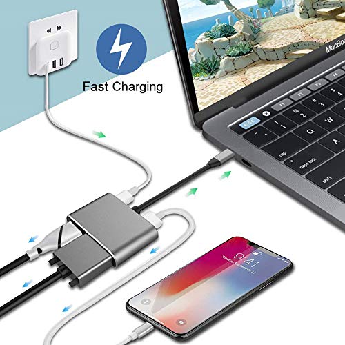 - 【موزع USB نوع C 4 في 1】: موزع USB-C يحتوي على منفذ HDMI بدقة 4K، منفذ VGA بدقة 1080 بكسل، منفذ USB-A 3.0، ومنفذ شحن USB-C PD بحد أقصى 100 وات. المحول 4 في 1 يمكن توصيله بعدة أجهزة لتلبية احتياجاتك اليومية. يدعم التبديل السريع / التوصيل، لا حاجة إلى برامج تشغيل، فقط قم بتوصيله وانطلق.