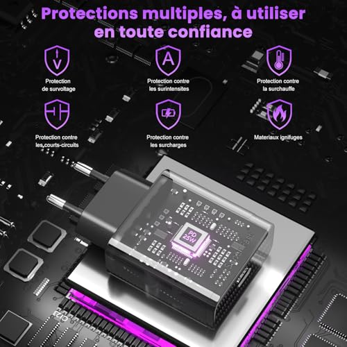 - حماية ذكية: يحتوي الشاحن السريع على شريحة ذكية مدمجة يمكنها تحديد الجهد الذي يتطلبه الجهاز تلقائيًا، والاستمتاع بالشحن التكيفي وفقًا لوظيفة الجهاز، وتجنب الجهد الزائد والتيار الزائد والحمل الزائد وقصر الدائرة، مما يحمي جهازك بفعالية. الحصول على شهادة CE FCC RoHS