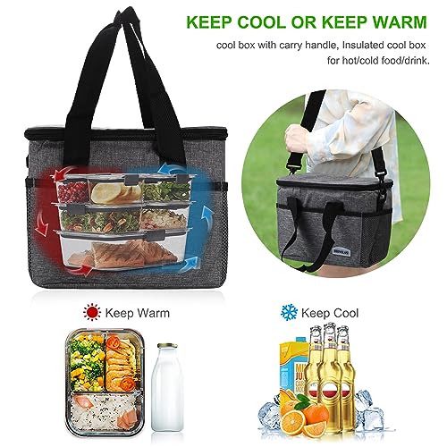 - تصميم بسعة كبيرة: شنطة التبريد ذات سعة قصوى تبلغ 7 لترات، والتي تتسع بشكل مثالي لانش بوكس والوجبات الخفيفة والفواكه وزجاجات المياه وغيرها من العناصر. شنطة الشبكة الشفافة المدمجة يمكن استخدامها لوضع عيدان تناول الطعام والملاعق وغيرها من الأدوات. تصميم الجيب الأمامي يمكنه تخزين الموبايل والمفاتيح وغيرها من الأشياء؛ يمكن استخدام تصميم الجيب الجانبي المزدوج لتخزين أكواب المياه.