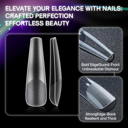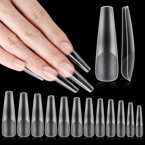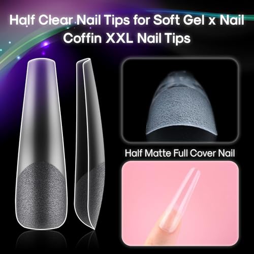 Generic - أطراف أظافر بتصميم كوفين مقاس اكس اكس لارج نصف شفاف مات ونصف غطاء مسطح للأظافر الاكريليك وصالونات التجميل المنزلية (12 مقاس 240 قطعة)