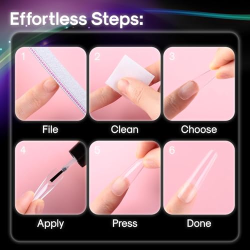 - سهل الاستخدام: مع تعليمات سهلة الاتباع، يمكن تثبيت أطراف الأظافر الصناعية هذه في غضون دقائق، مما يسمح لكِ بابتكار مانيكير بمظهر احترافي دون مغادرة منزلك.