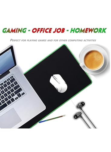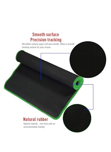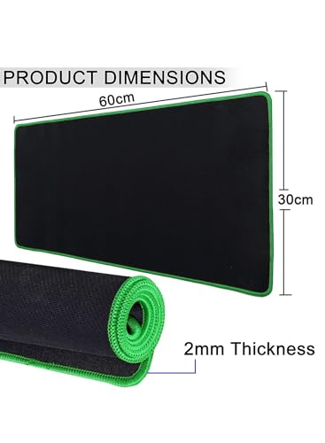 Generic - وسادة ماوس للألعاب XXL، أسود مع حواف خضراء، سطح ناعم للتتبع الدقيق، قاعدة مطاطية مانعة للانزلاق، 60×30 سم، مثالية للألعاب والمكتب