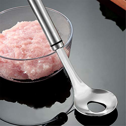 - ★سهلة الاستخدام: تحتاج فقط إلى الضغط على الملعقة يدويا، والضغط على كرات اللحم واستخدام الملعقة لإزالتها. ملعقة اللحم المصنوعة من الفولاذ المقاوم للصدأ ناعمة بحيث لا تلتصق بها اللحم المفروم.