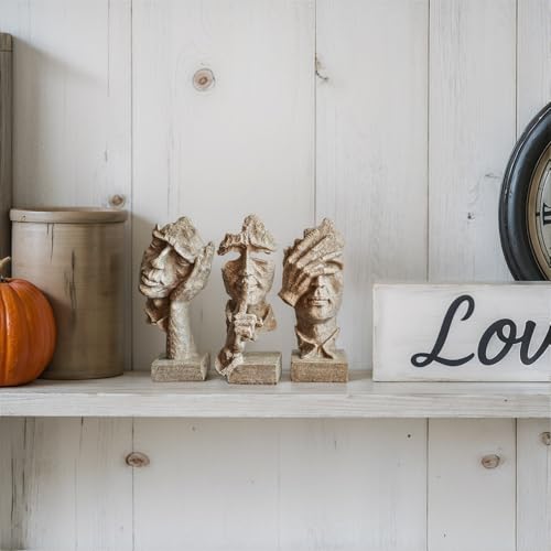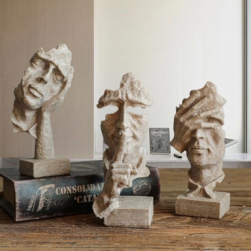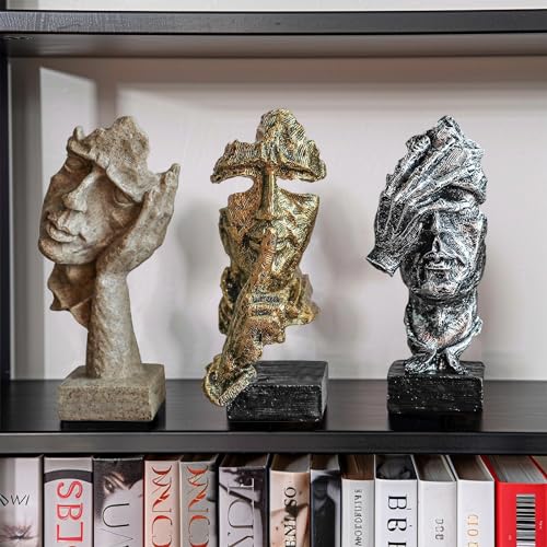 XYQXYQ - تمثال المفكر لديكور المنزل الحديث، طقم من تماثيل الوجه الإبداعية الصامتة باللون الذهبي، أعمال فنية أنيقة لسطح مكتب البيانو بالمنزل وللمكتب والدراسة من XYQXYQ، رمادي، 3 قطع