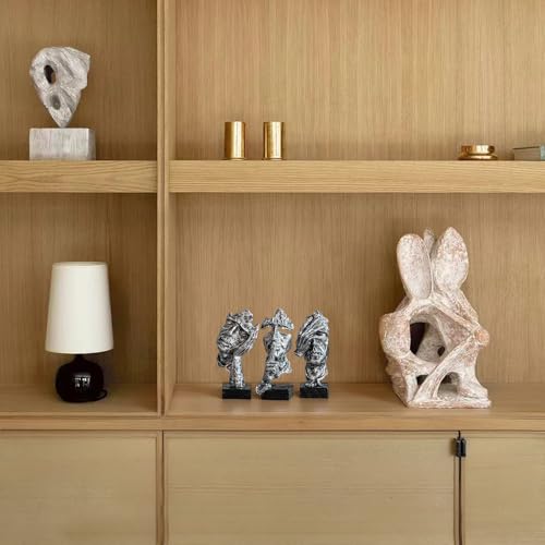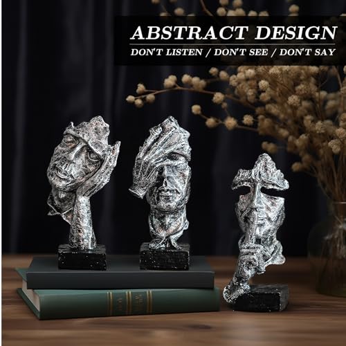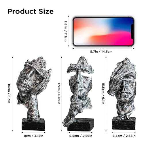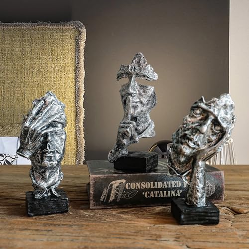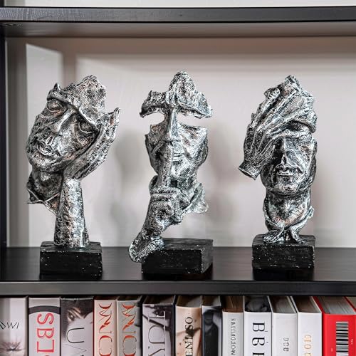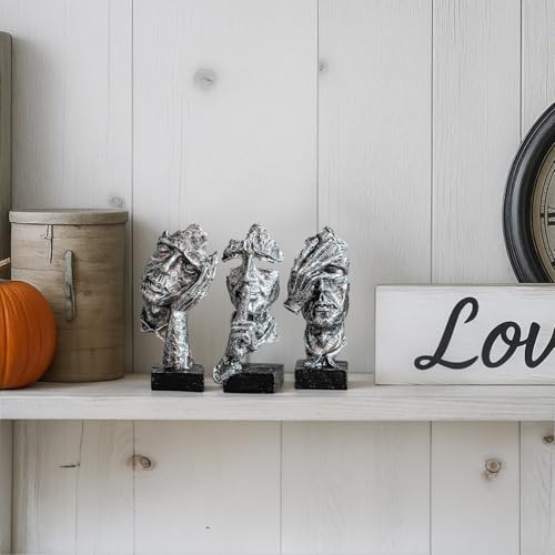 XYQXYQ - تمثال المفكر لتزيين المنزل الحديث، تماثيل الوجه الإبداعية الصامتة، أعمال فنية أنيقة لسطح مكتب البيانو بالمنزل للمكتب والدراسة من XYQXYQ، طقم مكون من ثلاث قطع (فضي)